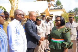 Chaude poignée de main entre la ministre Anne Ouloto et les autorités préfectorales et ses collaborateurs.