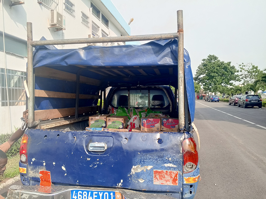 Le véhicule transportant les dons.
