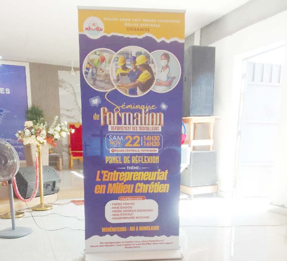 Le Département des travailleurs de l’Assemblée missionnaire évangélique pour les nations (AMEN) a organisé un séminaire de formation à l’église centrale de ladite communauté chrétienne sise à Yopougon Toits-Rouges. C’était le samedi 22 novembre 2025. Ce séminaire qui a drainé du monde a eu pour thème « L’entrepreneuriat en milieu chrétien. » Frères et sœurs chrétiens de l’AMEN, les chefs de communautés traditionnelles, des invités issus d’autres confessions religieuses, jeunes…, ont été instruits à des valeurs chrétiennes à avoir et des formalités administratives à suivre pour entreprendre.